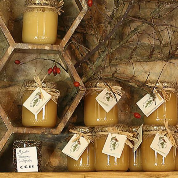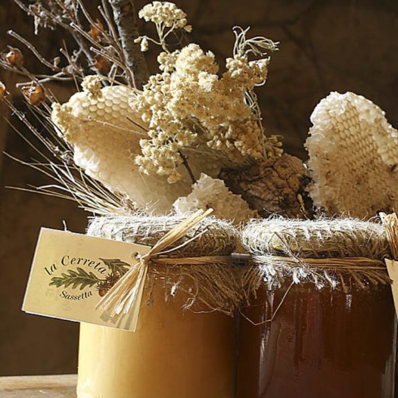 Among the most important agricultural activities there is bee breeding, an ancient tradition of La Cerreta.The mild climate, the different types of blossoms during the year and the excellent biological balance allow bees to produce – and us to harvest – excellent varieties of whole virgin honey. The extraction takes place cold and the honey is immediately packaged in jars.